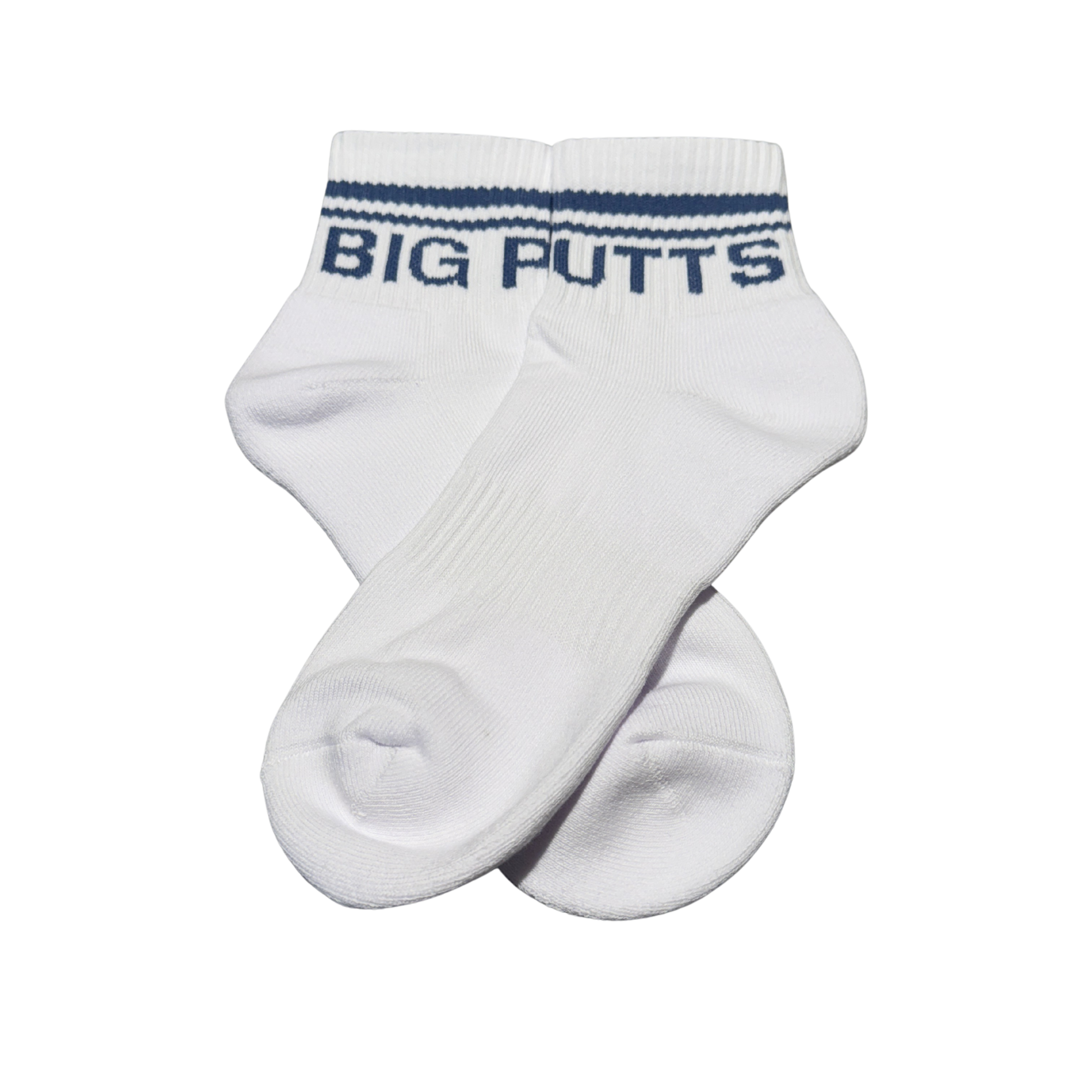 Same as our original Varsity Green Crew Sock but now in a new dusty blue. Featuring classic blue varsity stripes and “Big Putts” proudly wrapped around the ankle. Built for comfort with soft, breathable fabric and just the right amount of stretch.