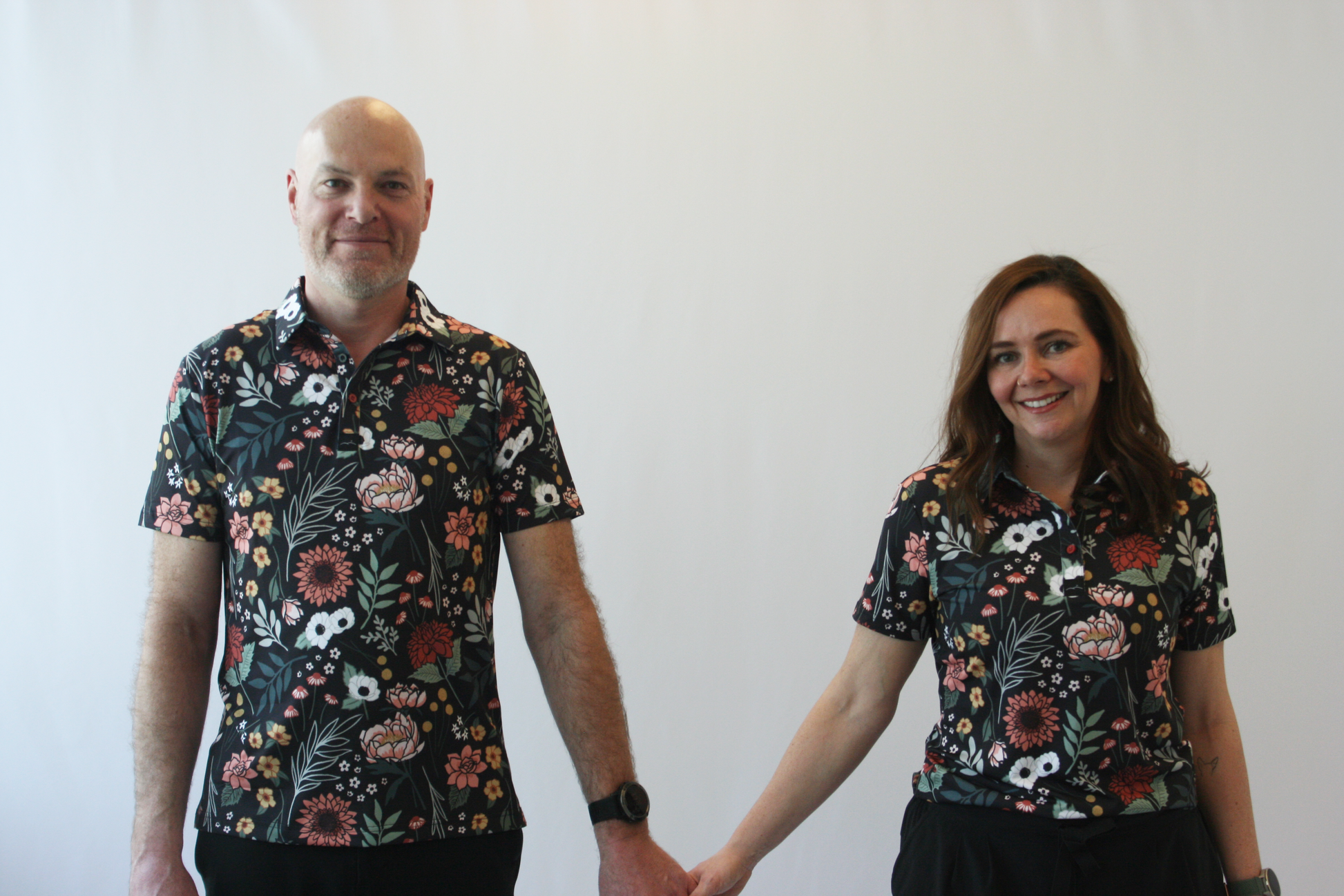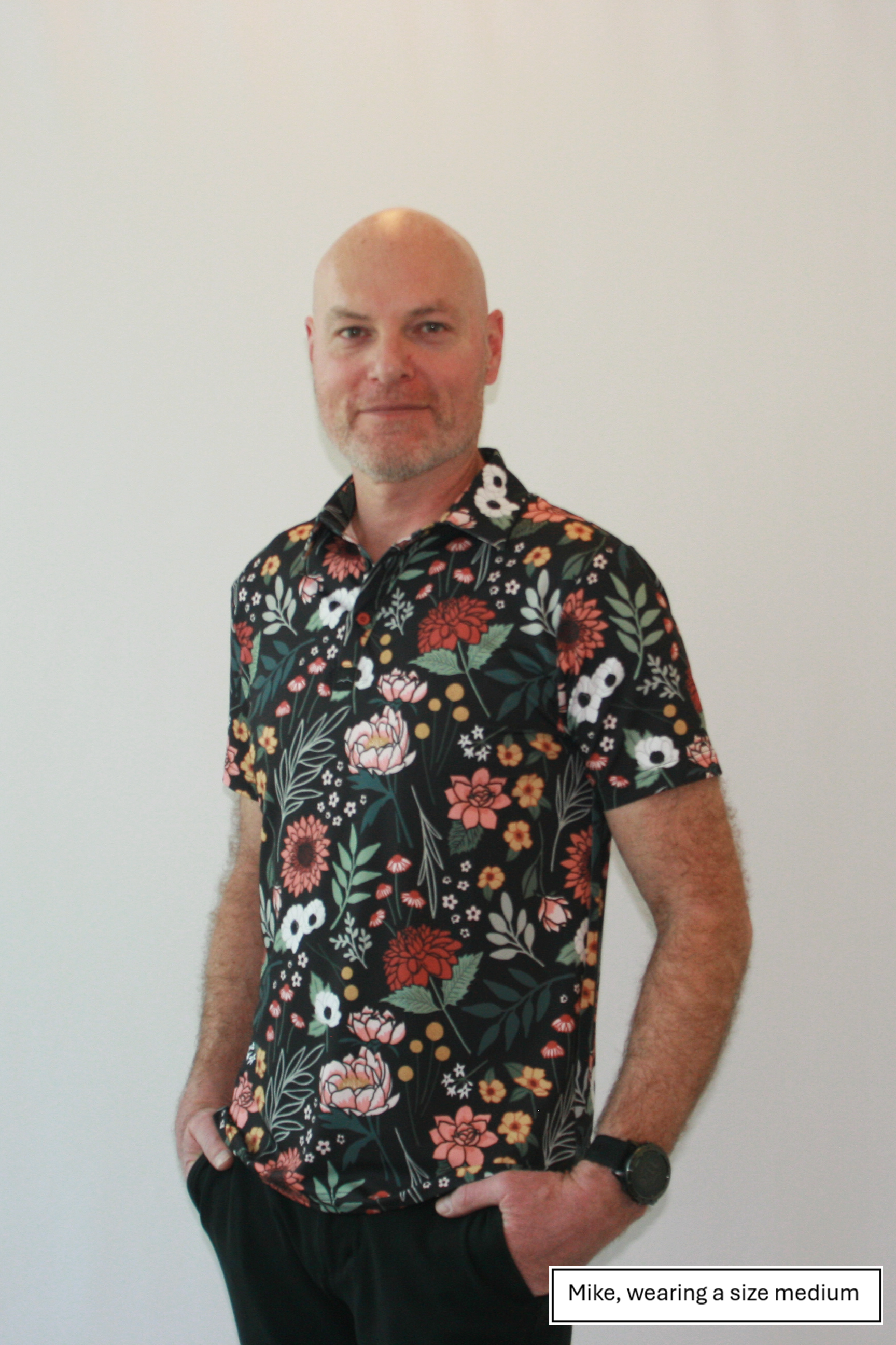The Wildflower Men's Short Sleeve Golf Polo is a striking and vibrant piece designed to make a statement on and off the course. Featuring a bold mix of terracotta, black, and green tones, this polo exudes a natural elegance while offering a modern, eye-catching design. Crafted from breathable, moisture-wicking fabric, it ensures you stay cool and comfortable throughout your round. Whether you're looking to stand out on your own or perfectly match with your lady, the Wildflower Polo delivers both style and performance in every swing.